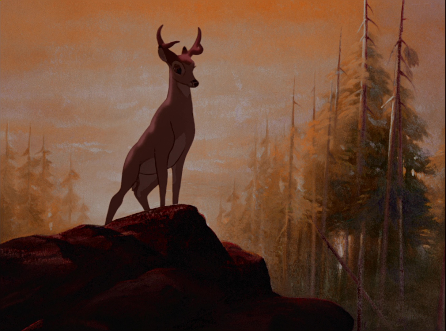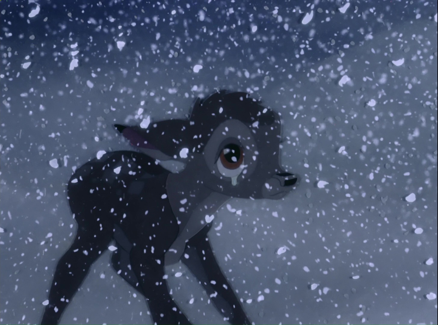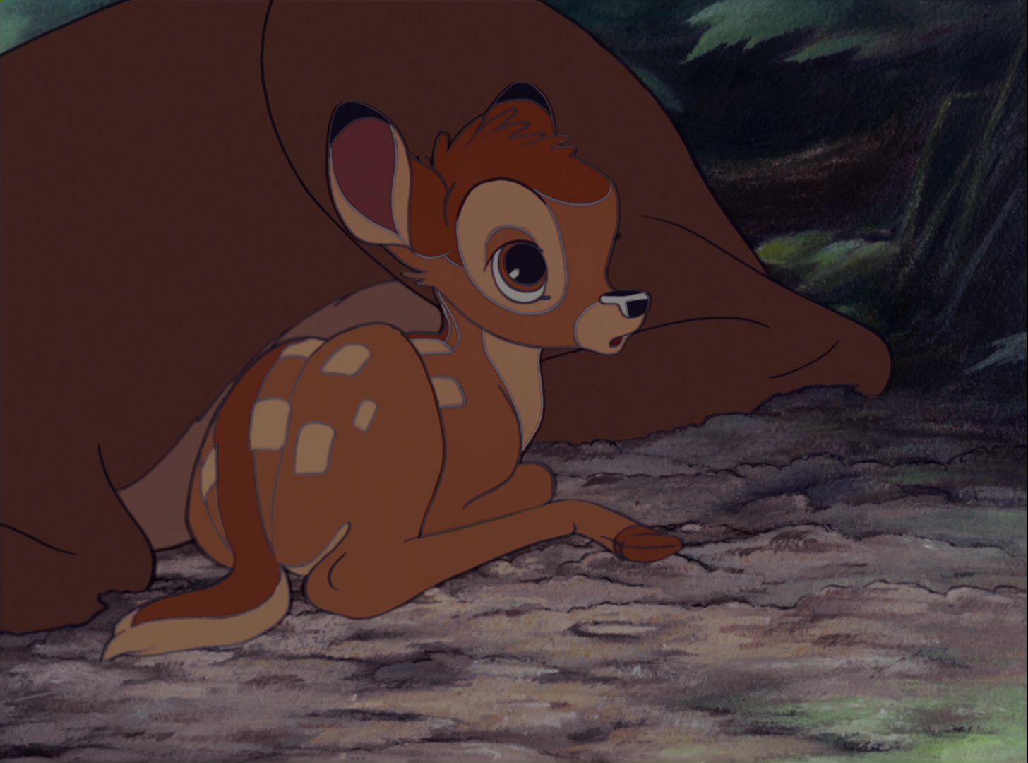 Alors qu’il se trouve avec sa mère, elle l’alerte d’un danger et lui ordonne de fuir. Bambi se retrouve alors seul sans savoir ce qu’il s’est passé. C’est lorsque le Grand Prince de la Forêt arrive qu’il comprend que sa mère vient de se faire tuer.