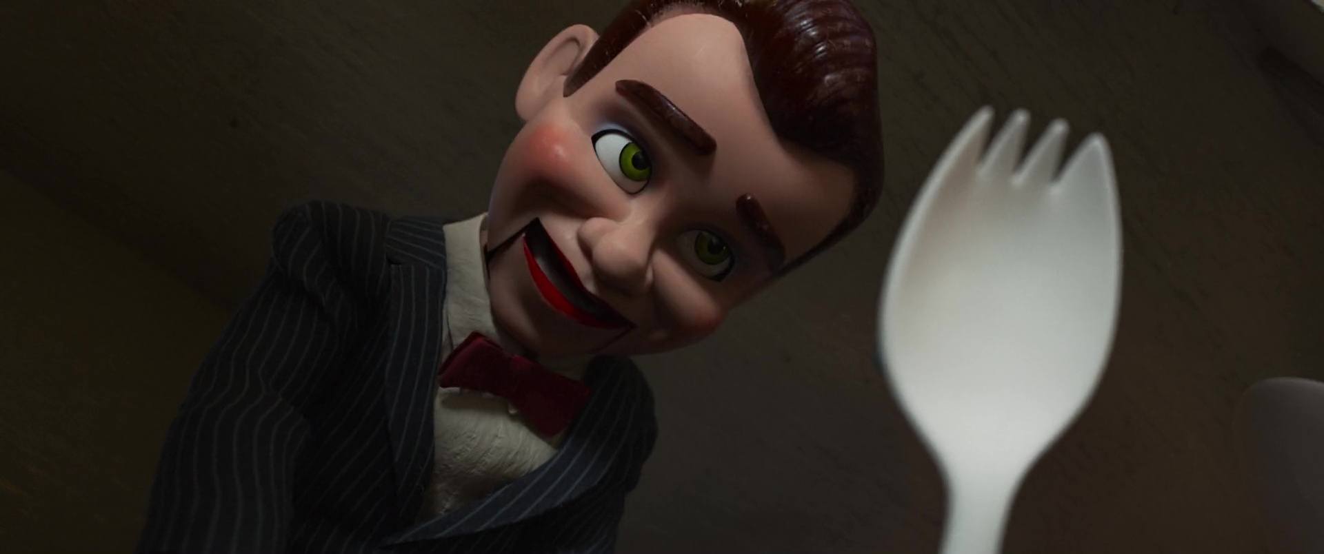 Les poupées ventriloques déjouent une nouvelle tentative de Woody et de ses amis de récupérer Fourchette mais capturent le mouton à trois têtes. Quand le cow-boy accepte le troc de Gabby Gabby, les Benson en sont témoins. Ils participent à l’opération de transfert de boîte vocale.