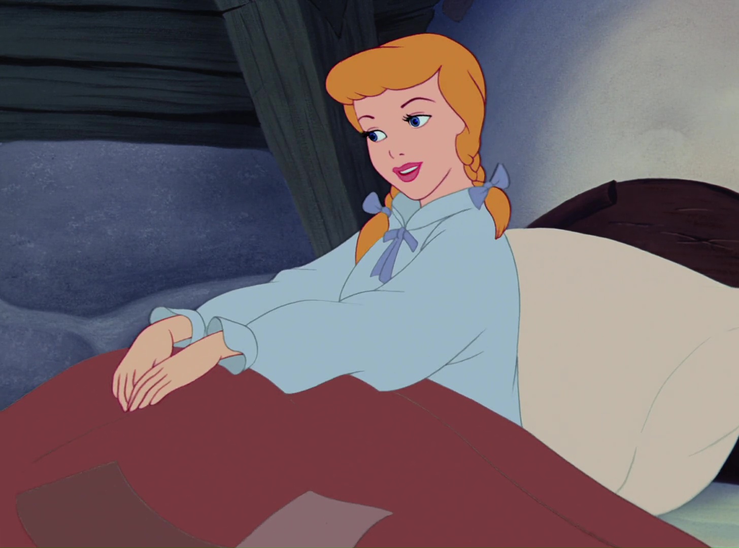 Elle se lève tôt et se fait aider par les oiseaux et les souris pour s’habiller et se laver. Elle vit dans une petite chambre en haut d’une tour. Jaq et Luke viennent la prévenir qu’une souris est coincée dans un piège. Elle part la libérer et la prénomme Gus.