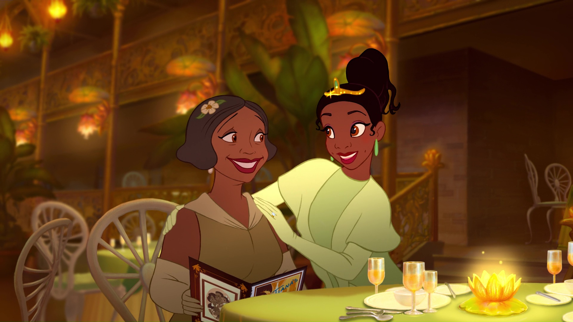 Elle aimerait que sa fille se repose davantage et se trouve un mari, mais pour autant, elle la soutient dans ses projets et dans ses rêves. Elle sera là dans tout les moments importants de sa famille, comme l’achat de son restaurant en ruine, mais aussi à l’ouverture de ce dernier ainsi qu’a son mariage avec le prince Naveen.