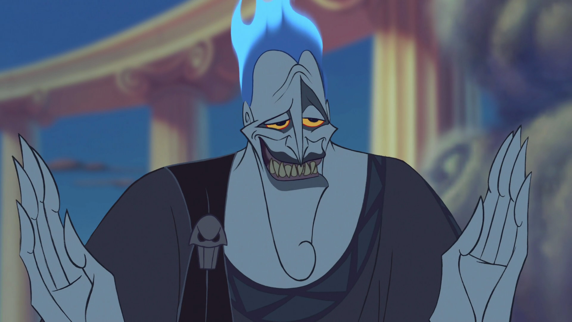 Hadès est le dieu des Enfers, c’est le méchant de l’histoire, il est prêt à tout pour atteindre son but qui est de diriger le mont Olympe : faire sortir les Titans ou tuer Mégara. Mais c’est aussi et surtout la belle touche d’humour du film, notamment avec ses deux acolytes, Peine et Panique. C’est grâce à eux que le film a autant atteint le public, l’humour est présent tout au long du film, les gags, les jeux de mots, alors certes certains peuvent considérer cet humour comme potache mais on ne peut pas ne pas rire devant ce film.