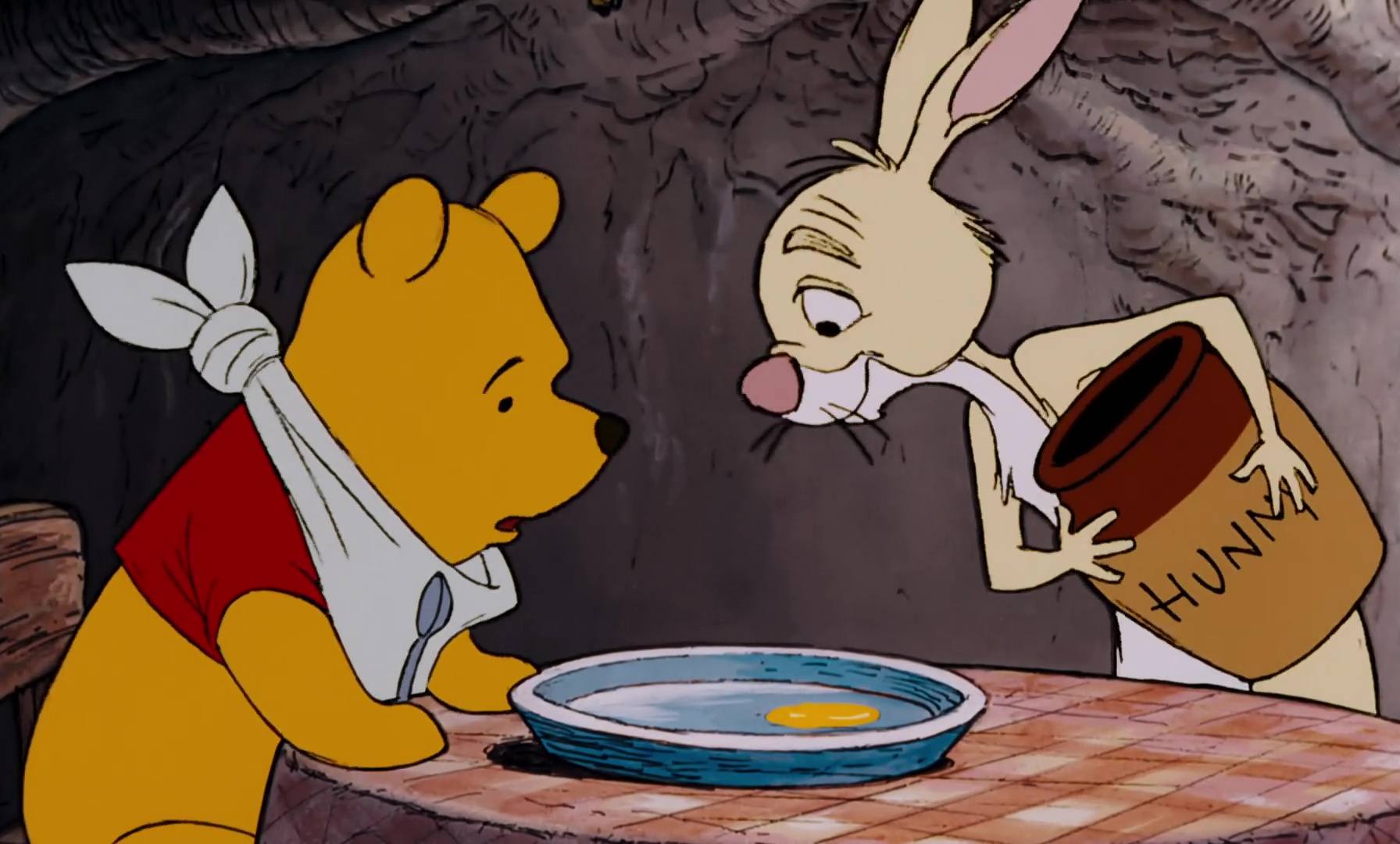 Dans Winnie l’ourson et l’arbre à miel, la célèbre scène où Winnie reste coincé dans le terrier de Coco Lapin n’est pas présente dans le livre original, mais vient de l’imagination de Walt Disney.