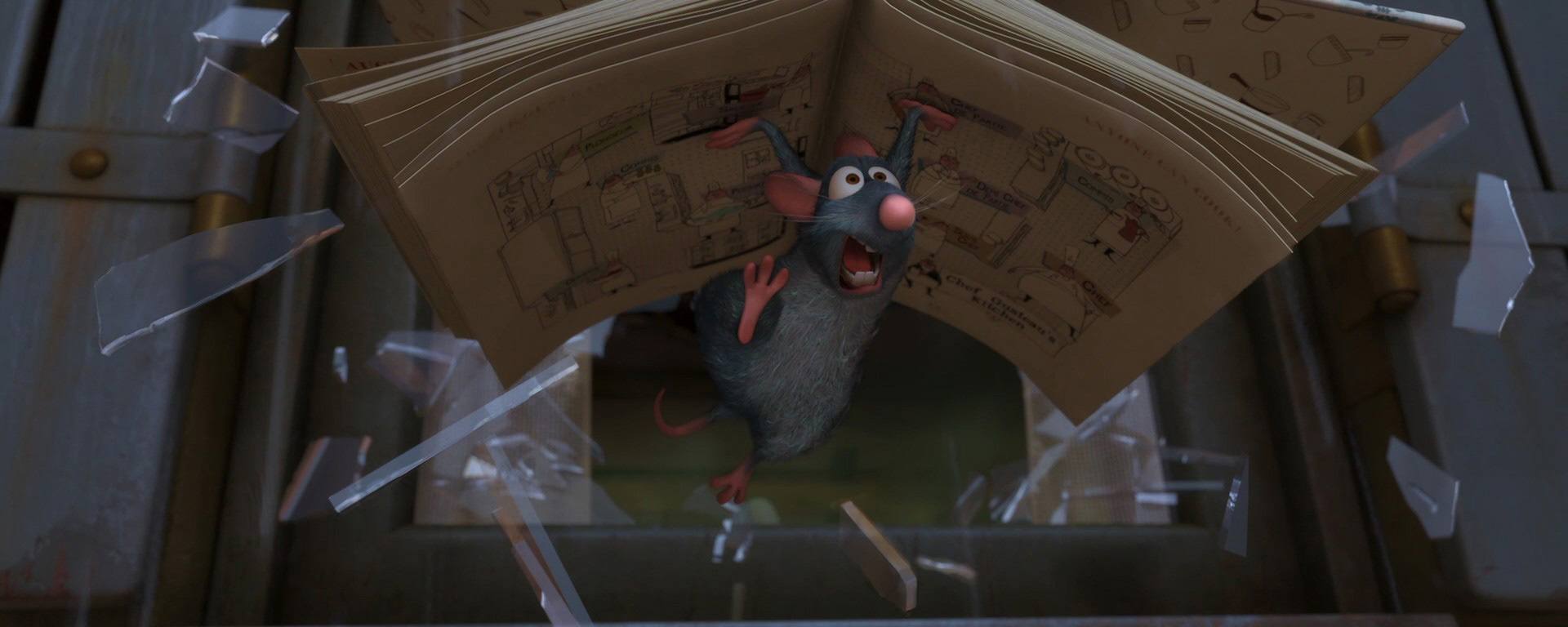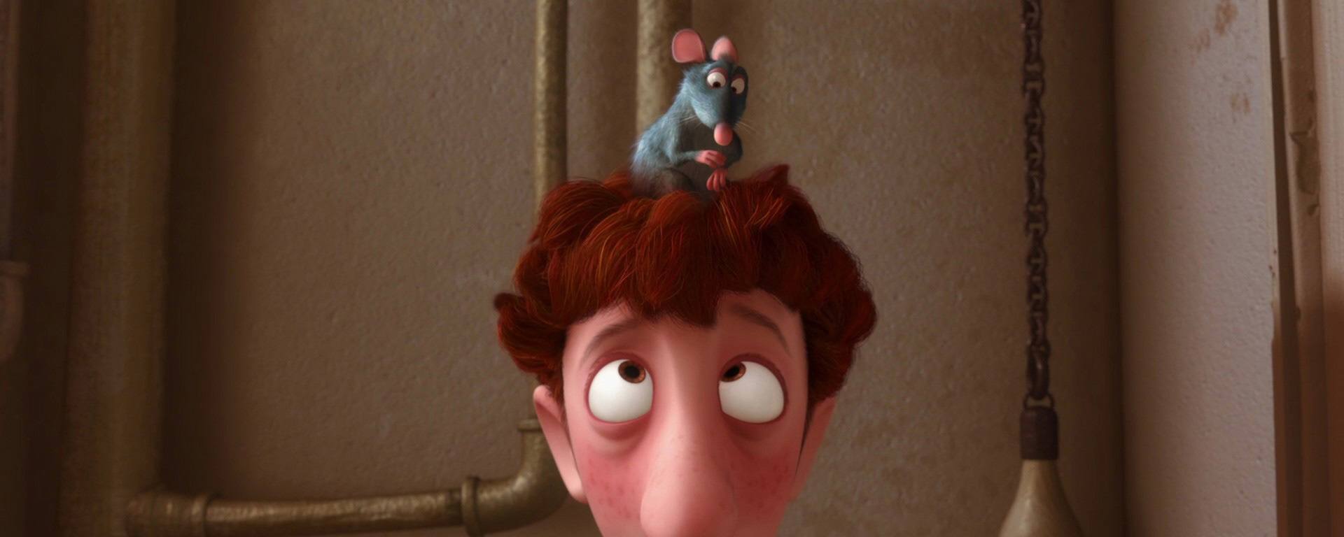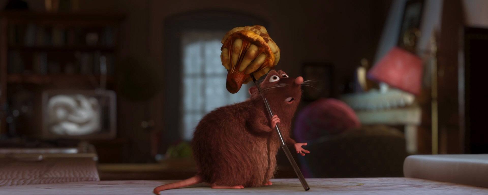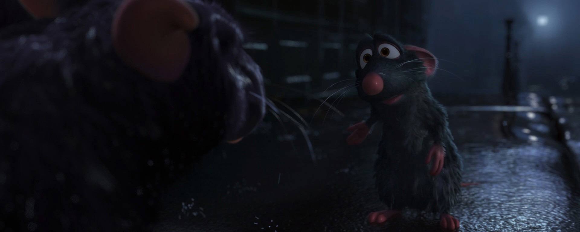 Rémy : Là… C’est moi. Il est clair qu’il y a quelques petites choses à revoir dans ma vie. Qu’est-ce qui ne va pas ? Primo… Je suis un rat. Autrement dit, la vie est dure. Secundo, j’ai un odorat et un sens du goût extrêmement développés.