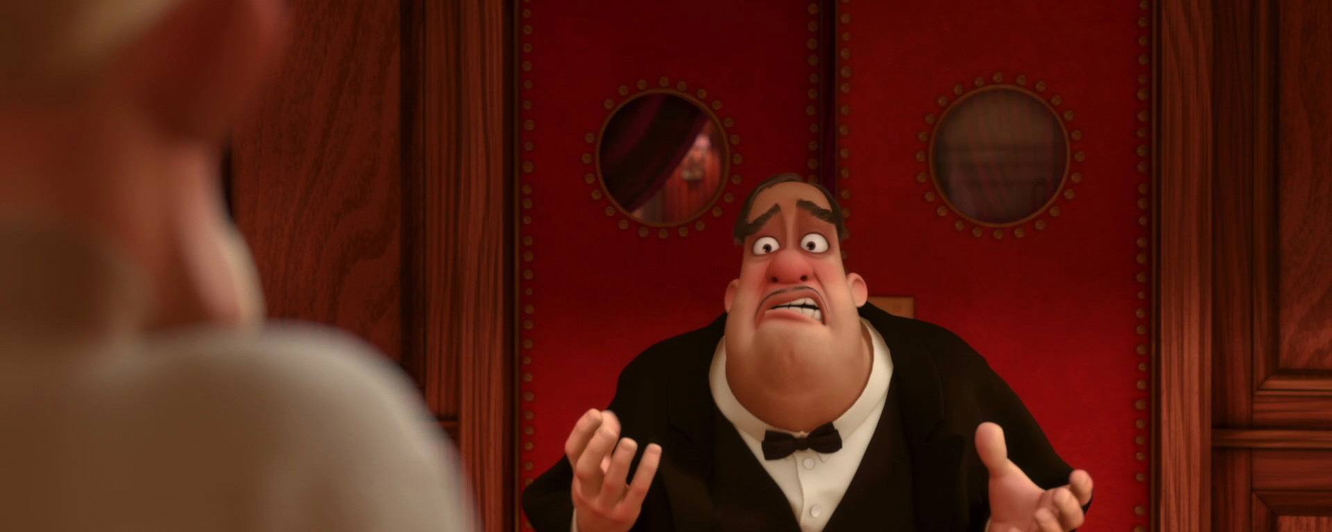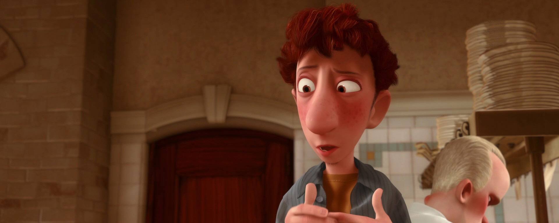 Linguini : Oh arrête de me regarder comme ça ! Tu n’es pas le seul à t’être fait piéger ! Ils m’ont demandé de refaire la même recette. Je n’ai pas la moindre prétention, je n’ai jamais voulu être cuisinier, tout ce que je voulais c’était ne pas avoir de problèmes. C’est toi qui a fait le malin avec tous ces aromates ! Qu’est-ce que tu as mis dans cette soupe ? De l’origan… nan ? Quoi alors, du romarin ? C’est un aromate hein le romarin…? Tu n’as pas mis de romarin ? Mais qu’est-ce que tu faisais alors avec tes pattes quand tu faisais tomber les les… Oh… j’en ai besoin de ce boulot. J’en ai perdu tellement. Je ne sais pas faire la cuisine et voilà que maintenant je parle a un rat comme si tu.. Aaaah tu as hoché la tête ? Tu as, tu as hoché la tête ? Tu comprends quand je parle ? Je ne suis pas fou alors !! Hé mais attend un peu, attend… Je n’ai aucun don pour la cuisine c’est ça ? Mais toi… toi oui ? Ça va fais pas le modeste t’es qu’un rat après tout. Je ne sais pas ce que tu as fait mais ils ont adoré. Oui… ça pourrait marcher… Ils ont adoré cette soupe ! Ils ont adoré ta soupe… Est-ce que tu crois que tu pourrais la refaire ? Bon alors je vais te laisser sortir de ce bocal, mais maintenant il faut qu’on soit solidaires d’accord ? Bon bah…