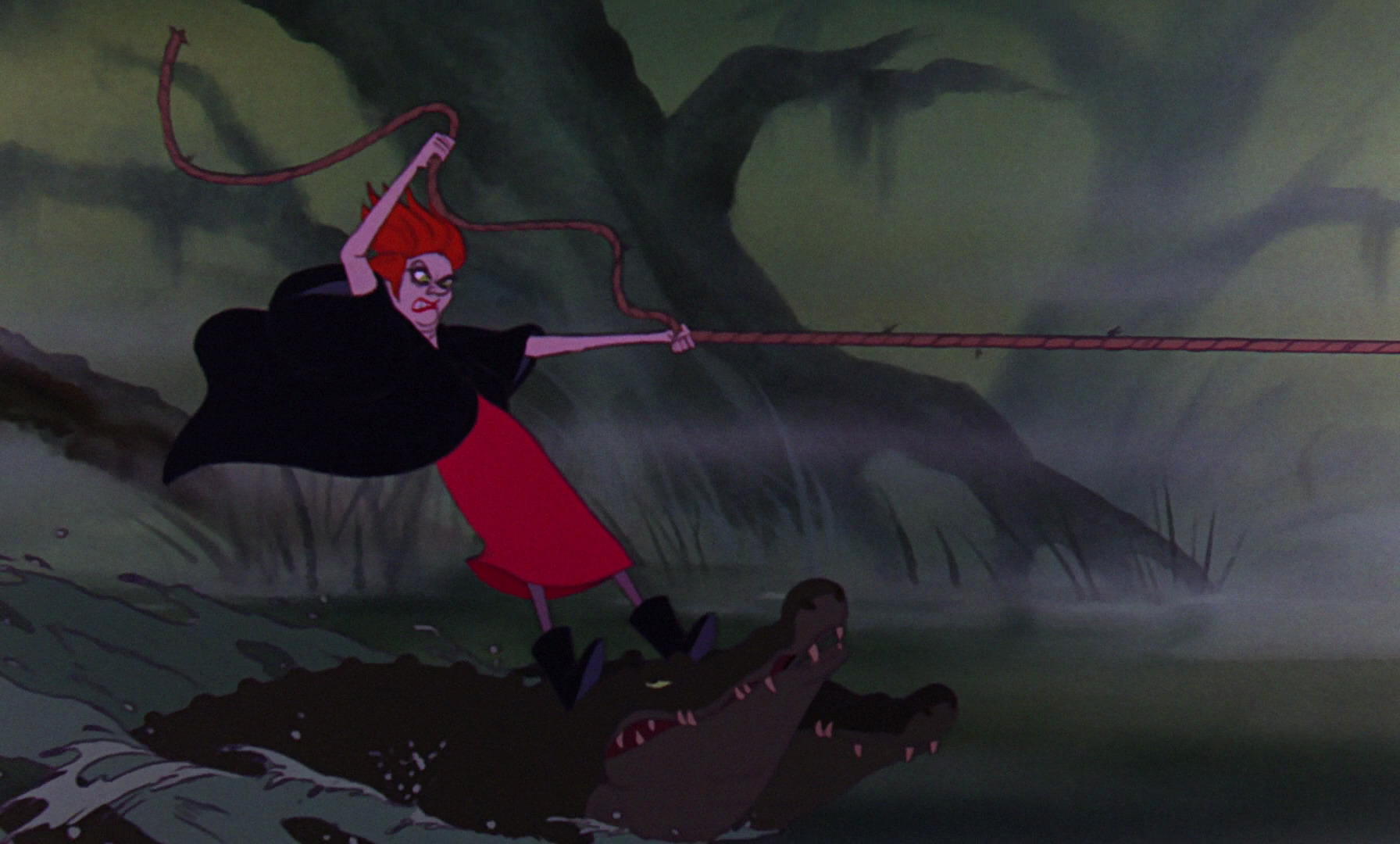 Médusa la pourchasse avec son véhicule qui se détruit. Elle utilise alors Brutus et Néron comme moyen de transport. Ceux-ci évitent un obstacle ce qui n’est pas son cas. Coincé, elle devient alors la proie de ses crocodiles qui veulent se venger de son mauvais traitement.