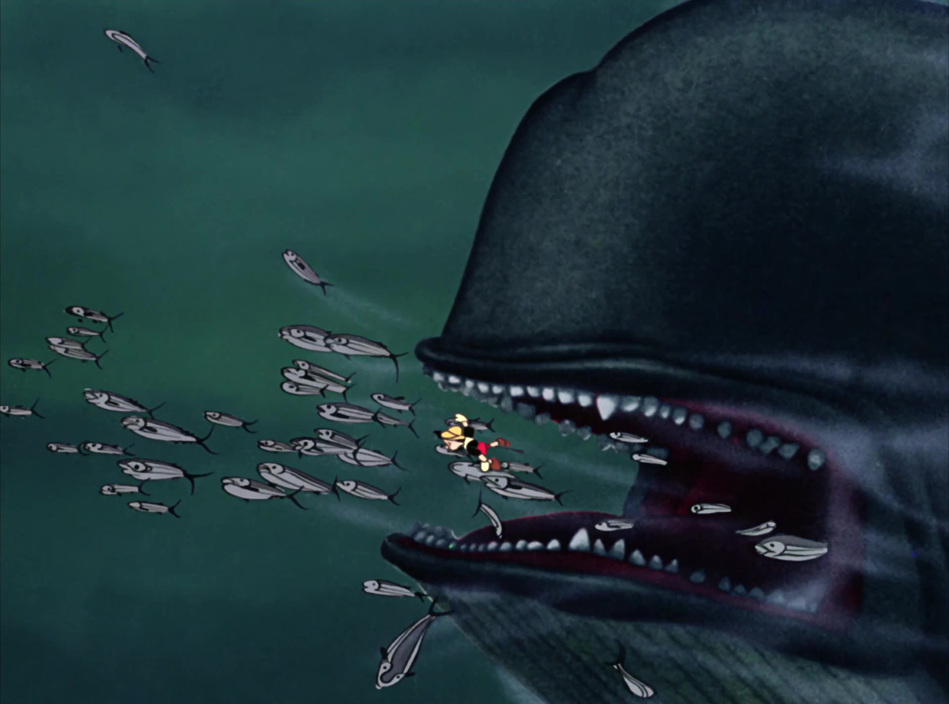 Monstro est une énorme baleine crainte par tous les animaux de l’océan. Geppetto s’est retrouvé enfermé dedans et il est sauvé grâce à Pinocchio qui va créer un feu pour que l’animal éternue et qu’ils puissent s’échapper. Une fois fait, elle les prend en chasse avant d’abandonner sa poursuite.