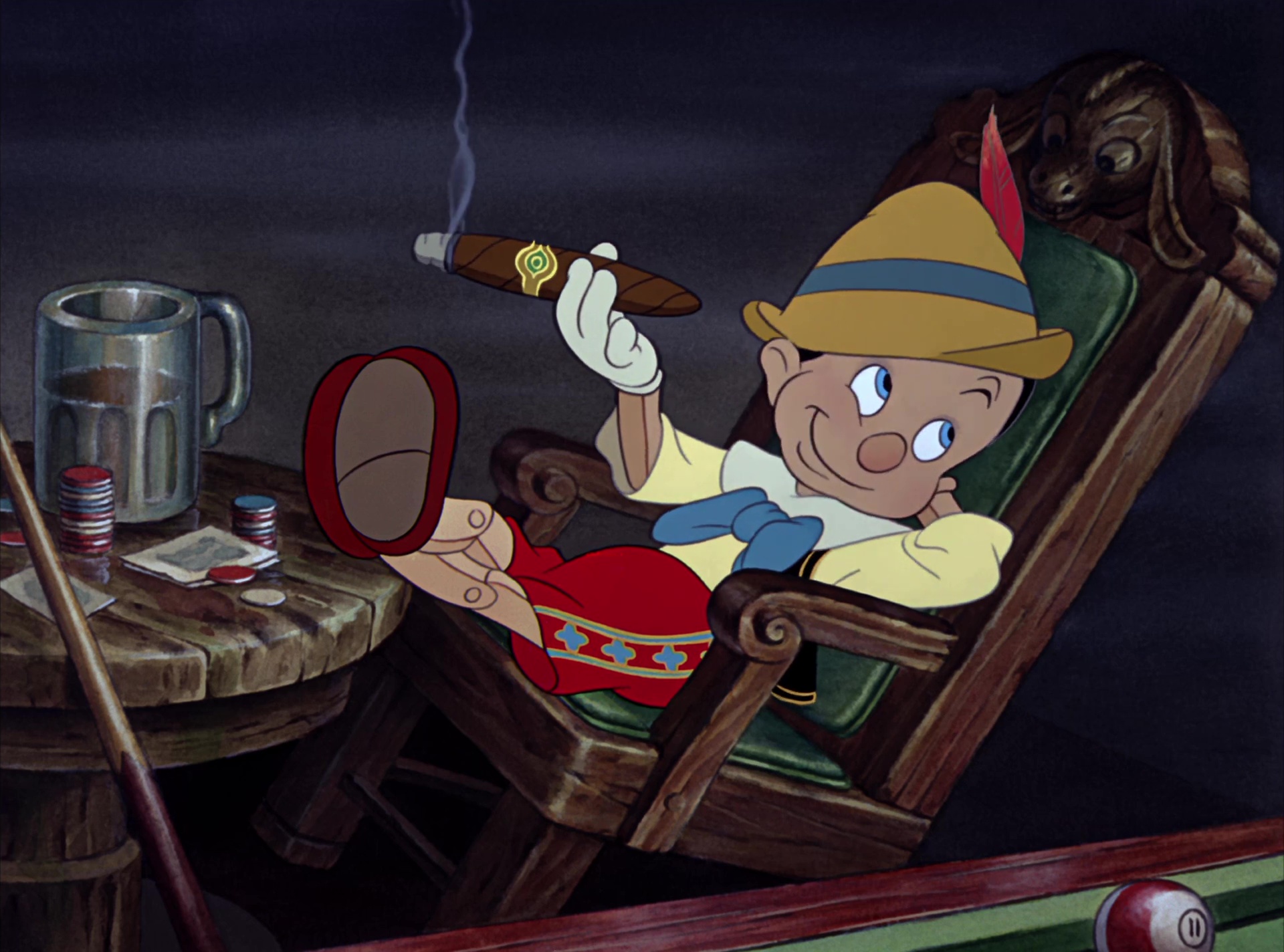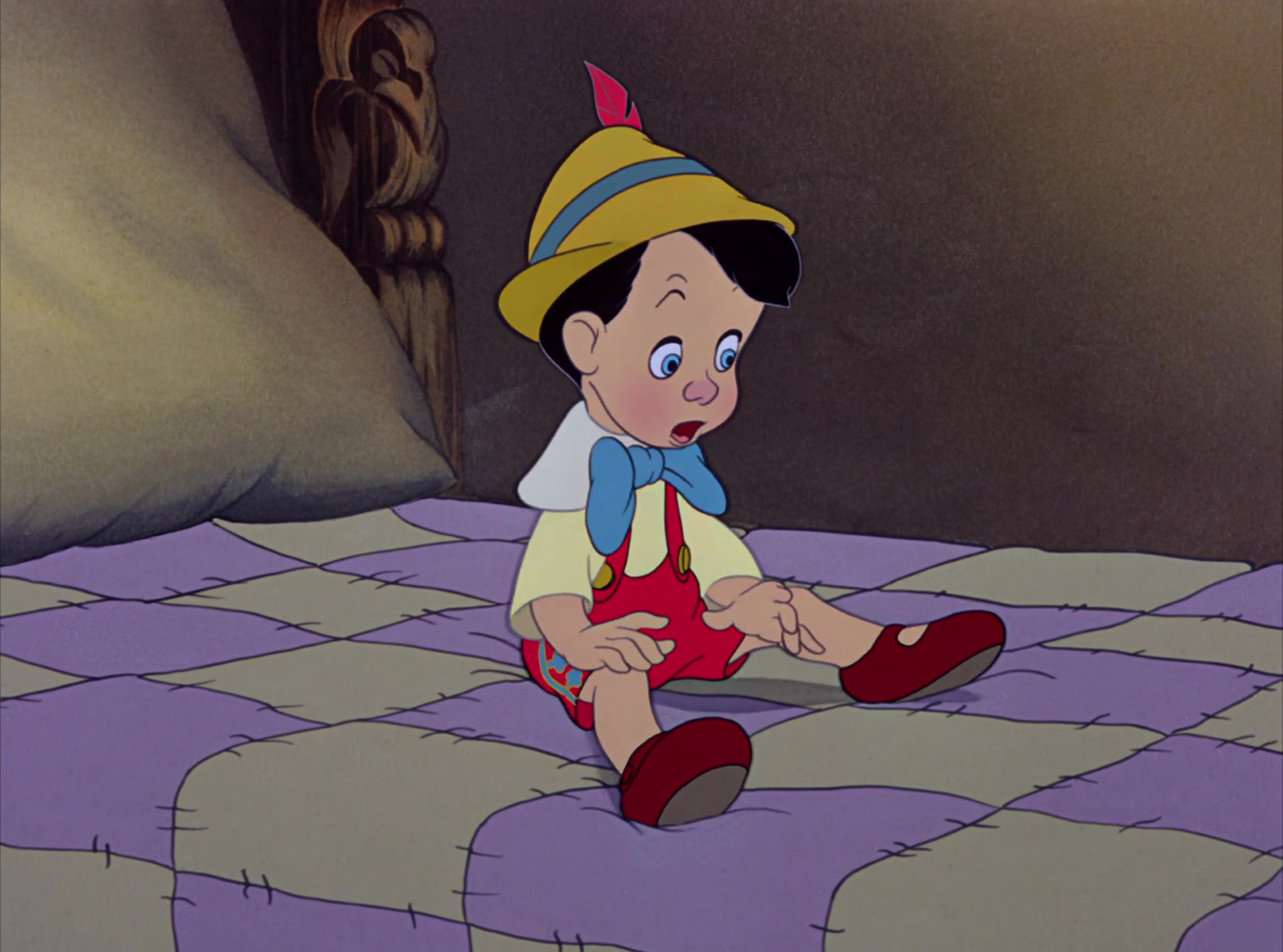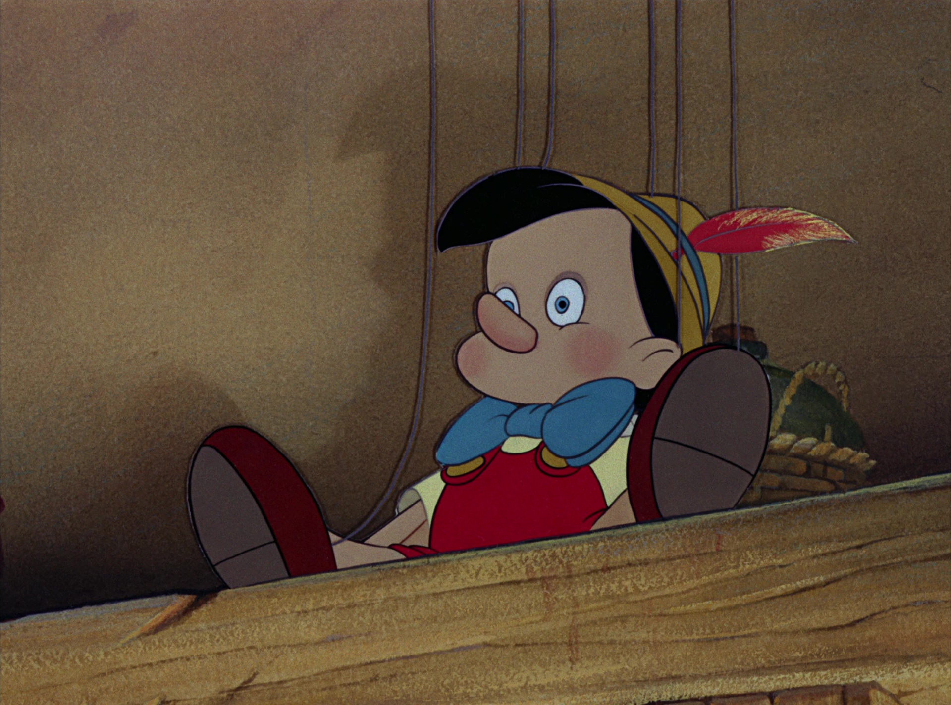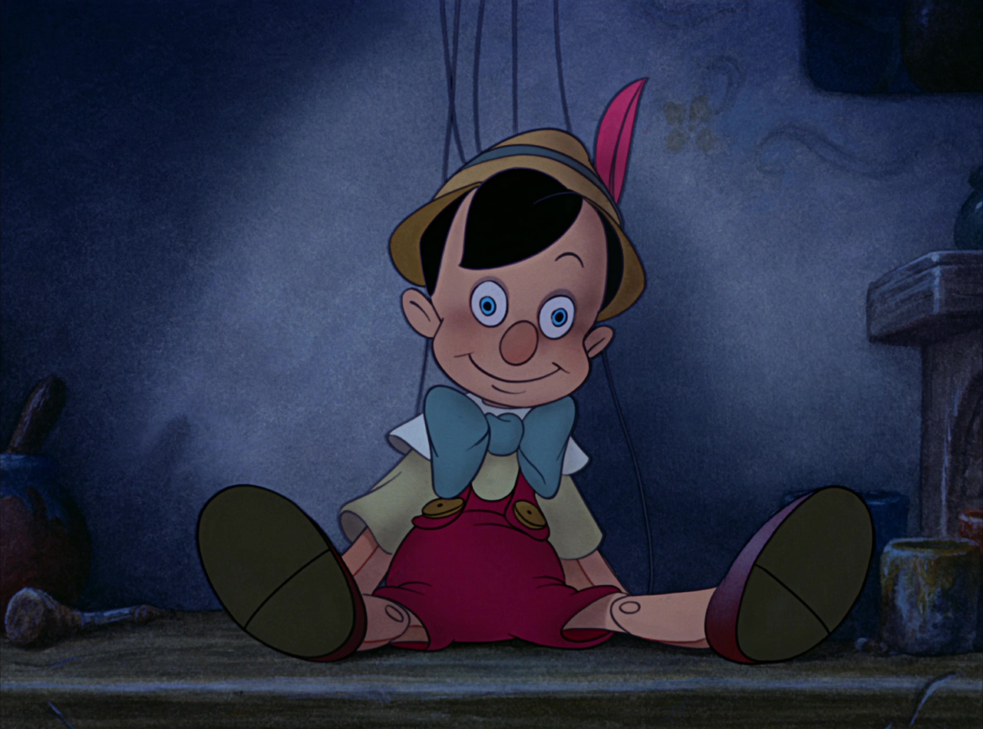 Pinocchioétait à l’origine beaucoup plus en bois jusqu’au niveau des mains. Walt Disney n’était pas satisfait du résultat et demanda à ses équipes de le rendre plus humain que jouet. Des gants lui furent alors apposés pour gommer l’effet bois trop prononcé.