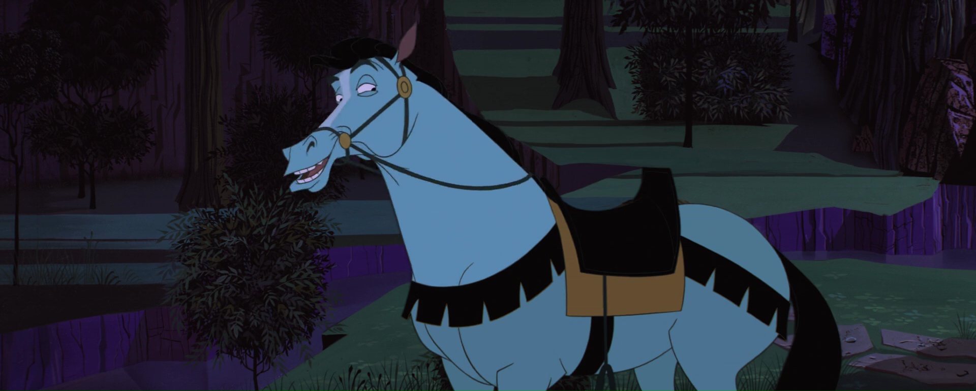 Portant son cavalier en forêt, il refuse que Philippe suive le chant mélodieux. Ce dernier lui fait du chantage sur un meilleur futur repas. Il accepte donc mais sa folle course fait tomber Philippe qui le prive de carottes.