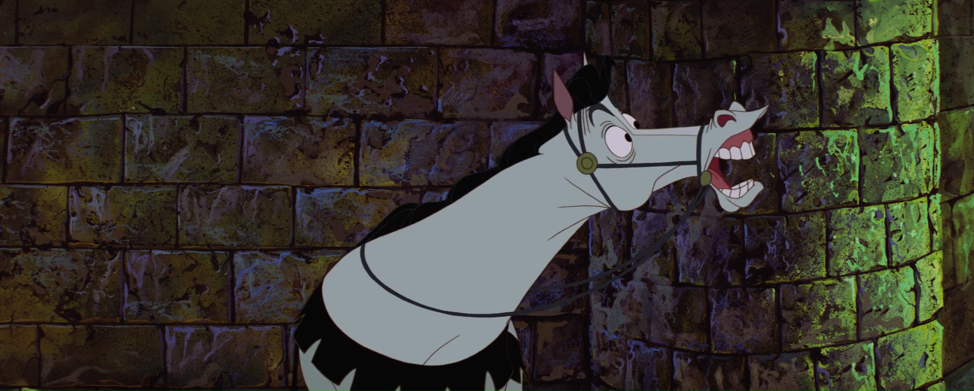 Il est emprisonné par Maléfique avec son maître. Quand celui-ci est libéré, il s’empare de son cheval pour fuir le château.