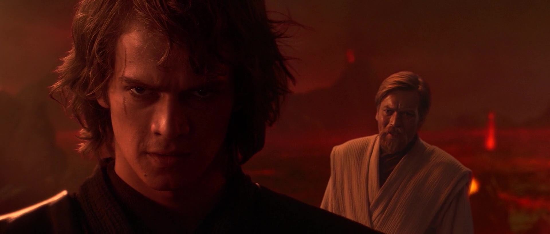Dès les premières minutes de la vive scène d’ouverture de Star Wars : Episode III – La Revanche des Sith, ce changement nous met la puce à l’oreille. L’élève aurait dépassé le maître et lui fait savoir par un répondant insolent qui le ridiculise quelque peu. Pourtant, le duo Anakin/Obi-Wan fonctionne encore mieux, amélioré par une connivence plus concrète. Celle de deux frères ennemis, qui feront exploser leur animosité au travers d’un combat des plus puissant, et plein d’une tension exacerbée. Deux êtres qui se disent leur haine comme leur amour au travers d’une longue joute corporelle.