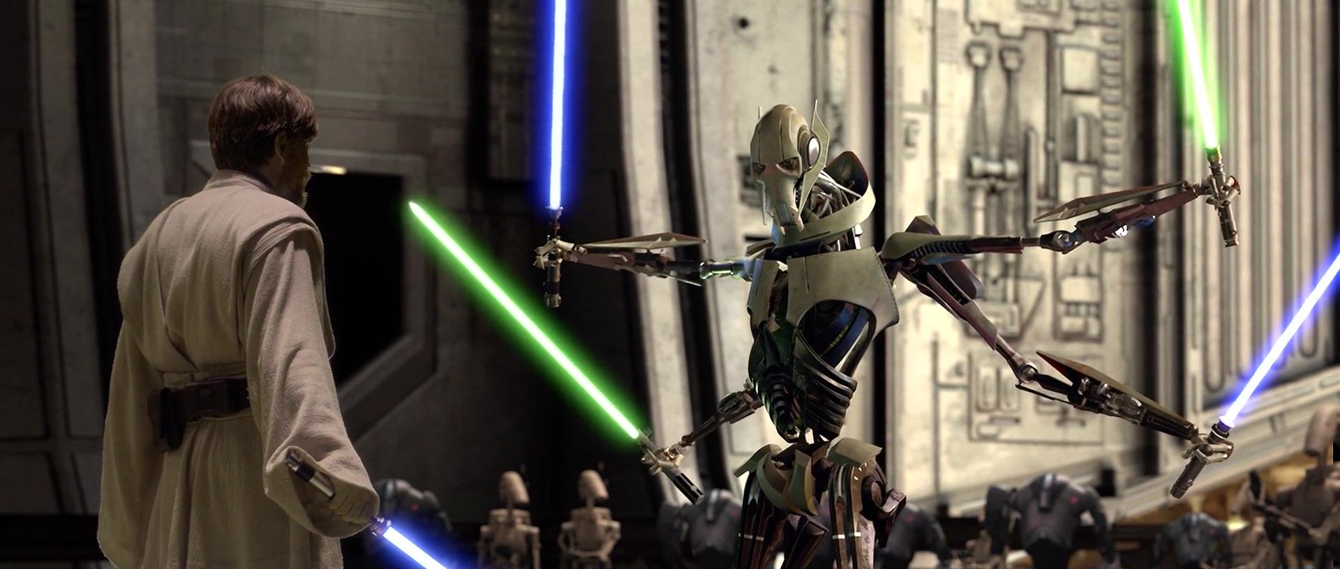 La toux distinctive du Général Grievous, est en réalité celle de George Lucas. Tombé malade durant le tournage, il avait décidé de l’enregistrer et de la « prêter » à ce personnage.